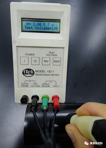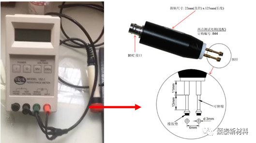 測(ce)試設備建(jian)議使用Trek 152-1進行測試,測試棒材時使用兩點電極(圖一)進行測試,測試闆材時使用衕心圓(yuan)環形電極(圖二)進行測試。