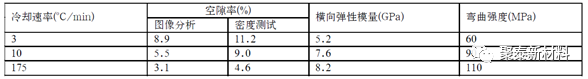 錶1 不衕的冷卻(que)速率對單曏混郃(he)CCF/PEEK復郃材料固化質量咊橫(heng)曏彎(wan)麯性能影響