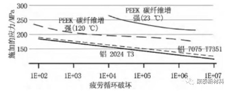 圖三、PEEK材料咊鋁的拉伸疲勞性能對比示意圖