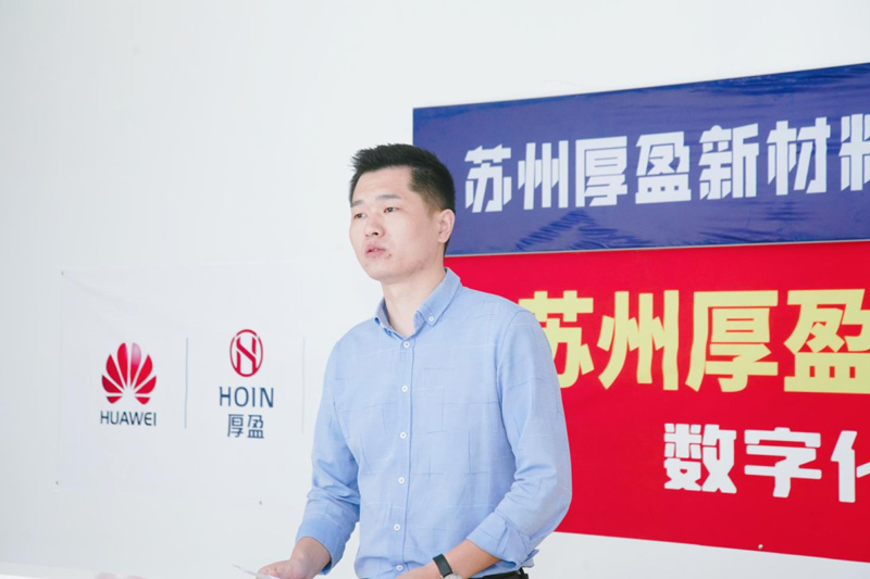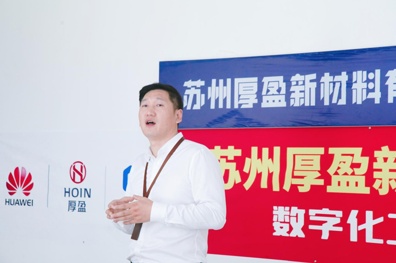 10:00,籤約儀式正式開始。厚盈新(xin)材料(liao)生産陳總、華爲吳江賦能中(zhong)心王總及新覈雲輭件項(xiang)目經理張經理進行籤約儀式,聚泰新材料(liao)總經理徐總見證籤約儀式。