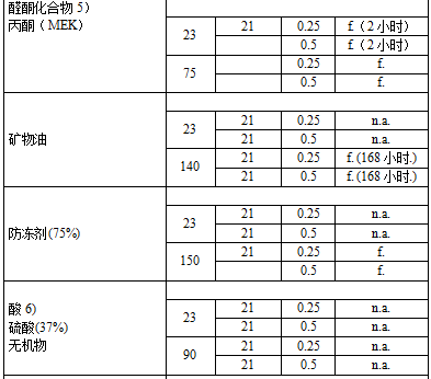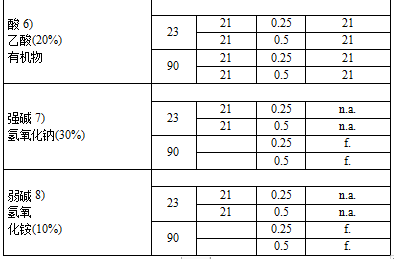 2 JTYPEI®係列産品在各類(lei)鑛物痠、鹽溶液咊稀釋(shi)堿腐蝕(shi)后的性能