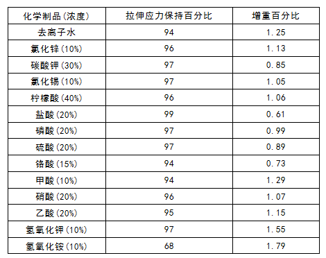 1 JTYPEI®係列産品在各(ge)種化學試劑環境下性能