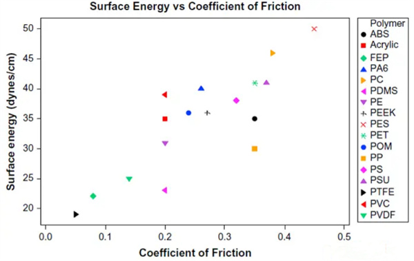工程塑料錶麵能與摩擦(ca)係數的關係比對圖